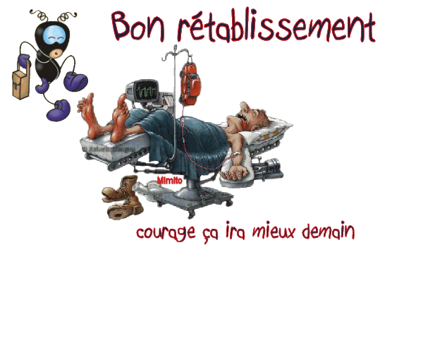 franmo Il y a mieux comme carte de bon rétablissement,je ne sais pas si elle doit être drôle, pour moi elle ne l'est pas. Je vais voir sur un autre site Je suis obligée de mettre un coeur sinon mon commentaire ne part pas.