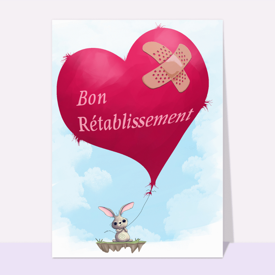 Cartes de voeux virtuelles gratuites. Espoir et Amour pour toi Une jolie animation pour te dire que je pense à toi. Je t'envoie ce message rempli d'amour. Bon rétablissement ! Un petit mot pour t'aider à te remettre sur pied ! Une maladie, une mauvaise passe, une. Rétablissement. Bon rétablissement.