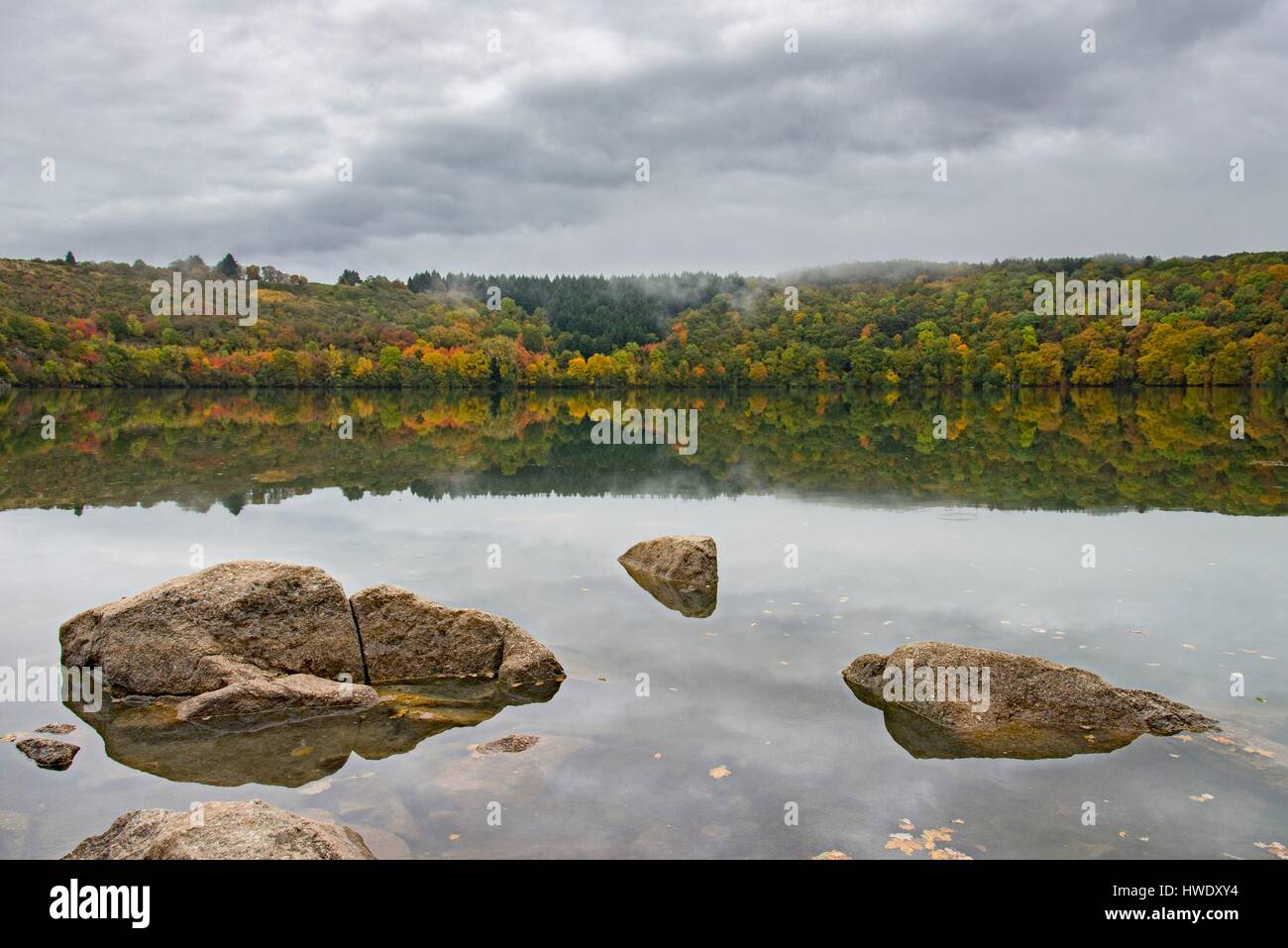 France, Puy de Dome, Charbonnieres les Vieilles, Gour de Tazenat, Maar volcano type Stock Photo