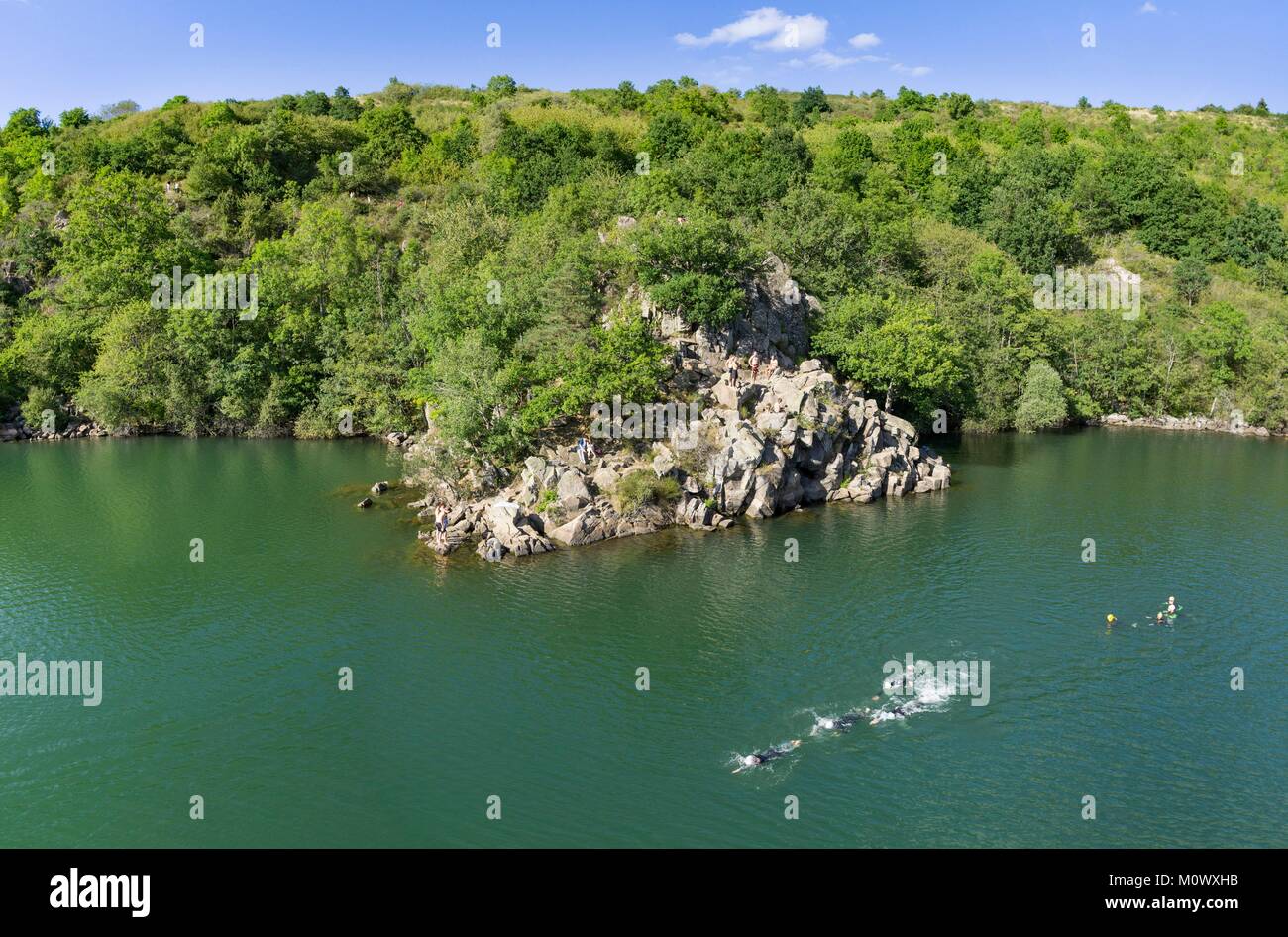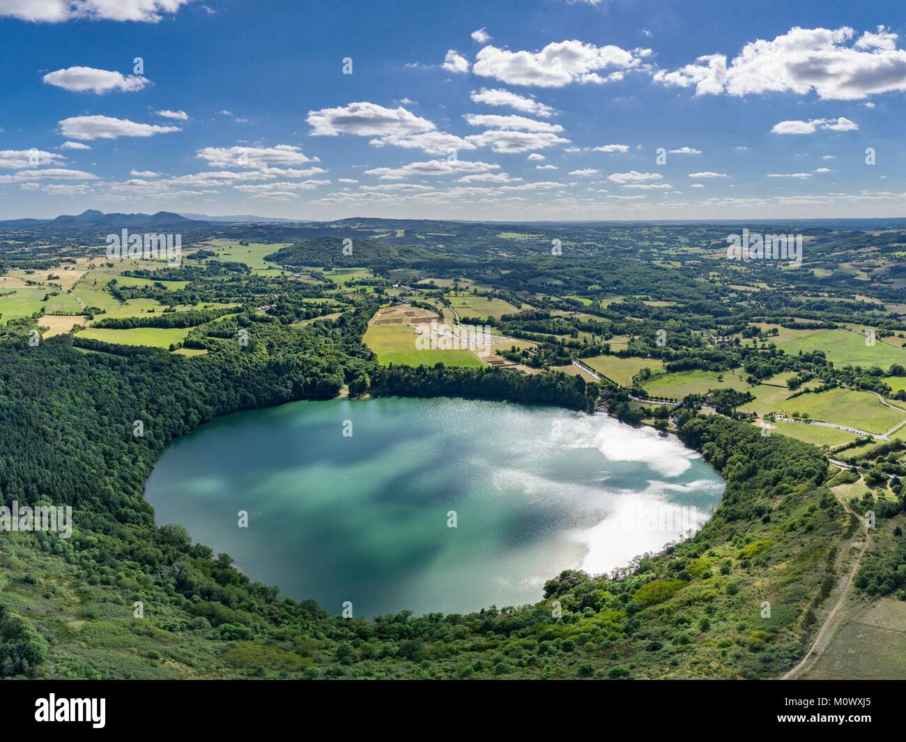 France, Puy de Dome, Charbonnieres les Vieilles, Gour de Tazenat, Maar volcano type (aerial view