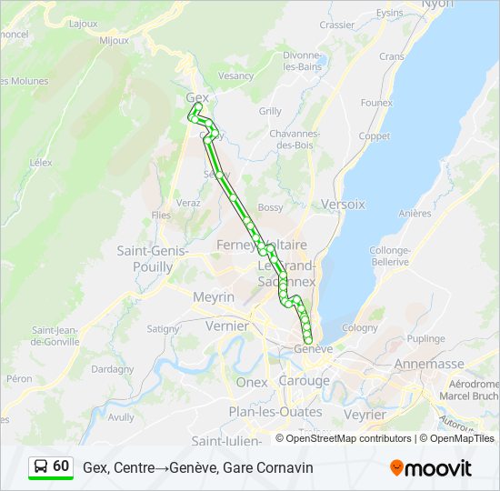 60 Itinéraire Horaires, Arrêts & Plan Gex, Centre→Genève, Gare Cornavin (mis à jour)