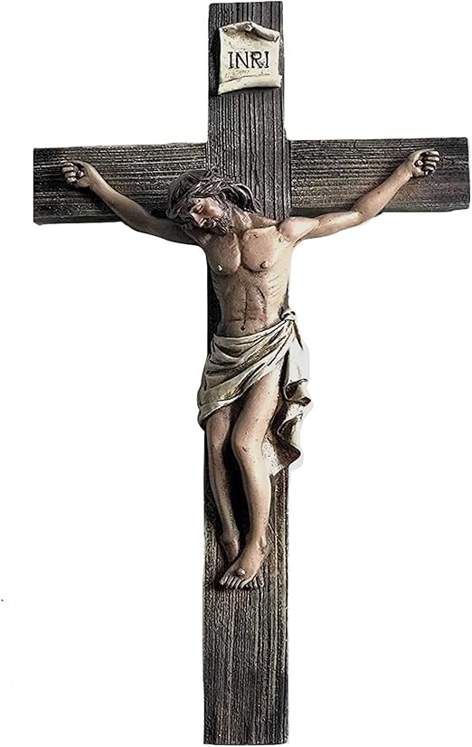 INRI Croix murale Jésus Christ en résine 35,6 cm pour décoration de la maison dans une boîte
