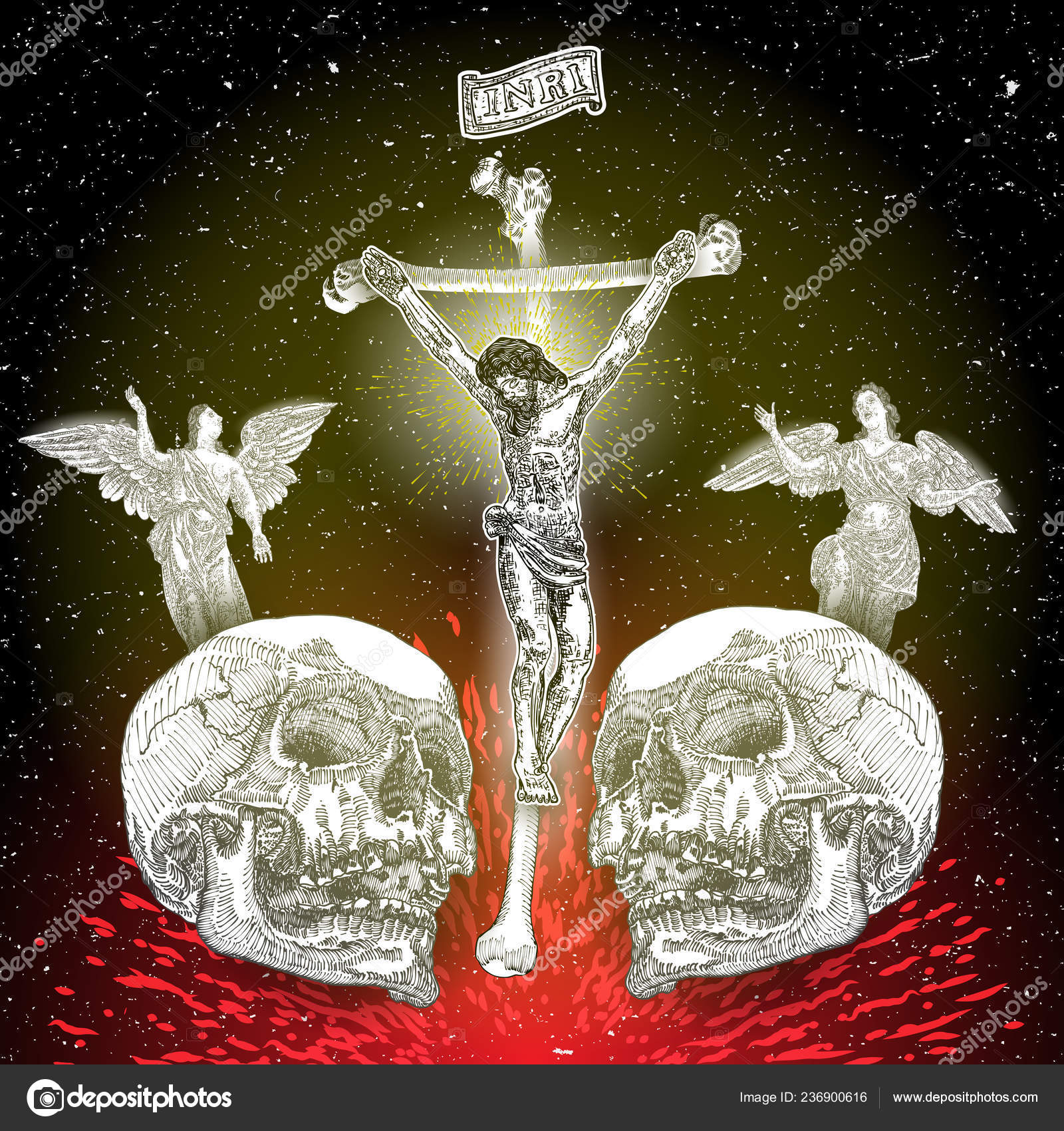 Jésus Christ Crucifixion Sur Croix Faite D'os Signe Inri Fils image vectorielle par goldenshrimp