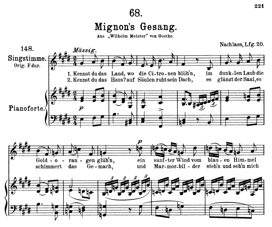 Lieder und Gesänge aus Wilhelm Meister, Op. 98a No. 1. Kennst du das Land, wo die Zitronen