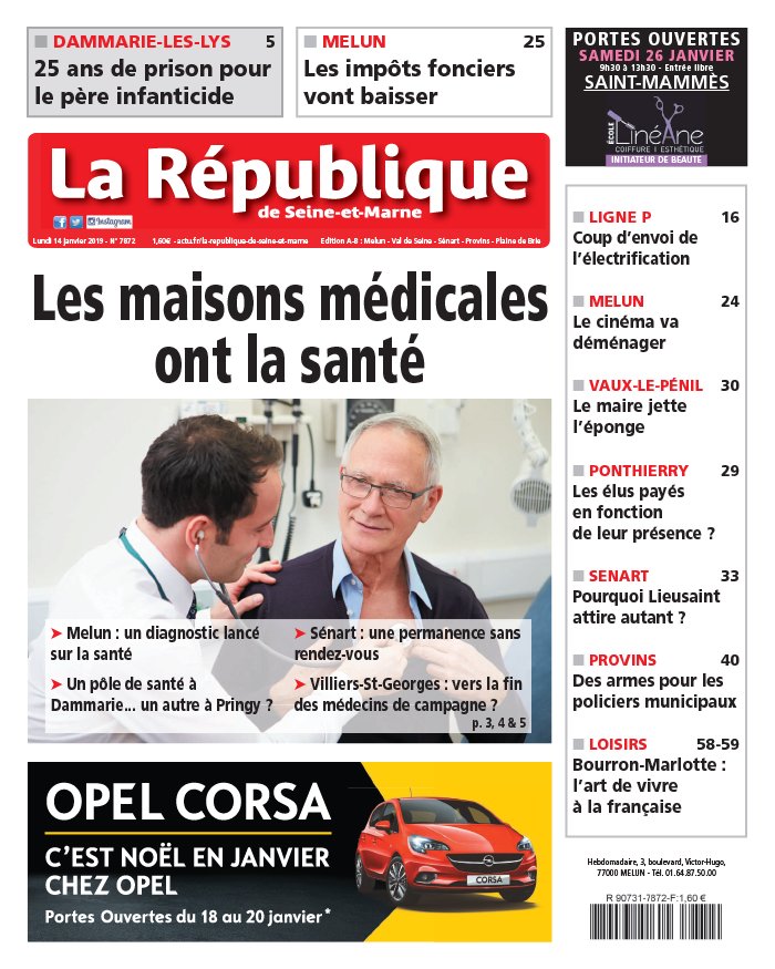 La République de Seine et Marne N°7872 du 14 janvier 2019 à télécharger sur iPad