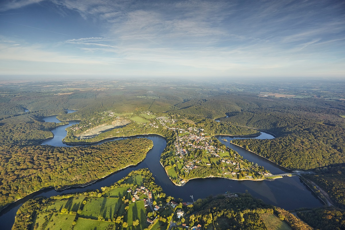 La forêt dévoile au détour de chemins, de taillis, de clairières, des souvenirs millénaires tels que des calvaires, et de beaux paysages modelés par les 2 barrages. Le barrage principal retient un lac de 120 ha où le touriste trouve une palette variée de loisirs pour passer un agréable séjour : baignade, pédalos, planche à voile, dériveur, canoë-kayak…