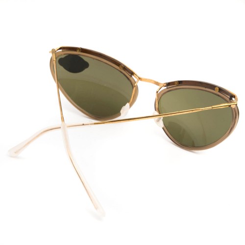 Lunettes de soleil en acétate épais COSMOS02 Ces solaires en acétate épais, très années 60, sont de forme arrondie légèrement papillonnante. Les branches larges laissent apparaitre par transparence leur structure métallique "sculptée " de guirlandes florales. Le bout des branches est quand à lui décoré d'un inlay en mé.