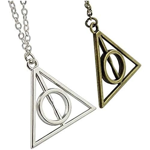 Les reliques de la mort symbolisent les trois objets magiques les plus puissants du monde sorcier, la cape d'invisibilité, la pierre de résurrection et la baguette de sureau.. Le pendentif de ce collier mesure environ 15 mm de hauteur et 15 mm de largeur, la chaîne mesure 40 cm avec une rallonge de 5 cm. Le collier est une chaîne à maillons plaqué argent et est livré sur un emballage.