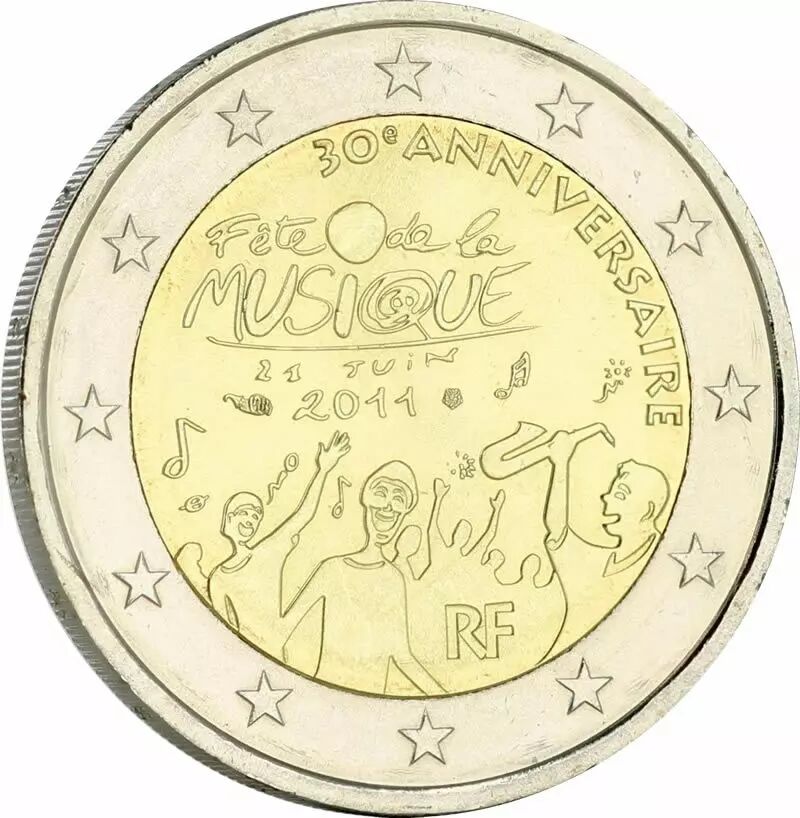 Pièce 2€ commémorative France 2011 pour les 30 ans de la fête de la musique. EUR 4,00. ou Offre directe. EUR 2,30 de frais de livraison. juliette83000 ( 1646) 100% d'évaluations positives.