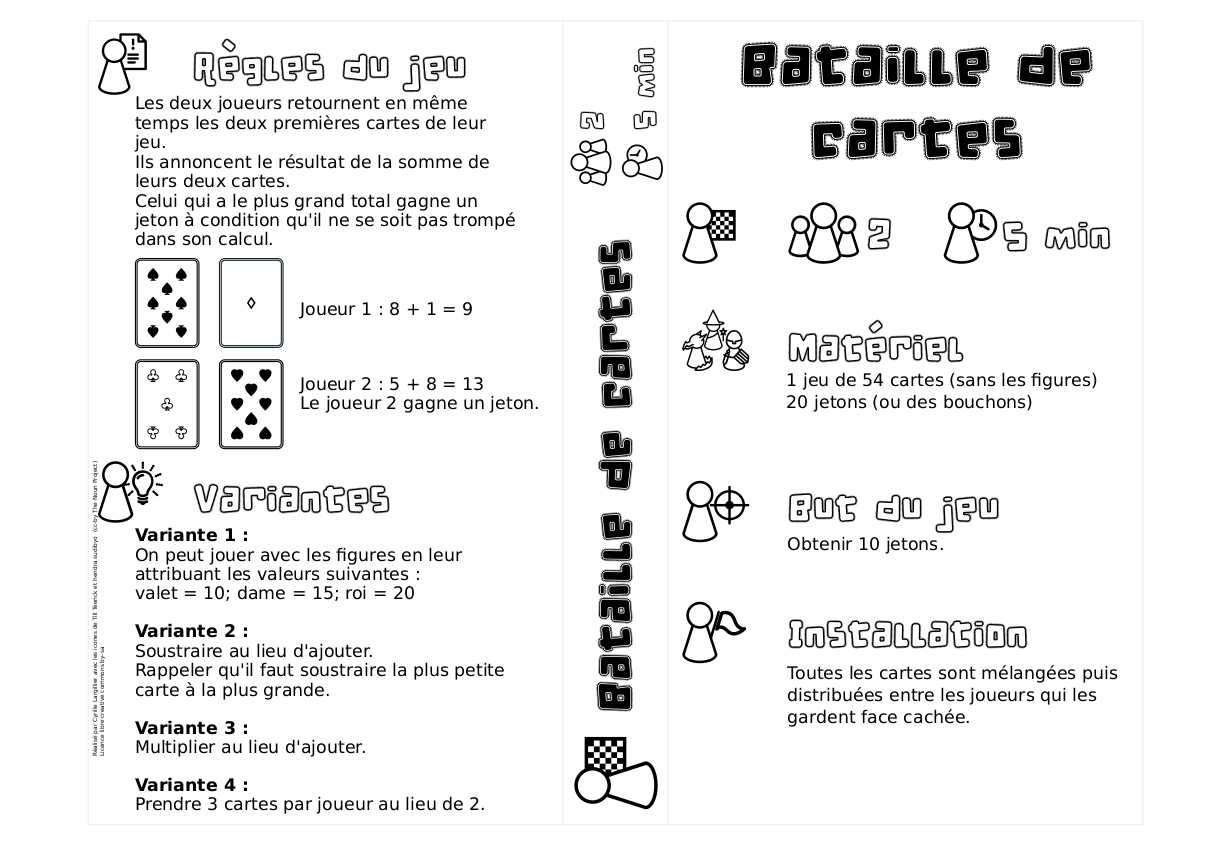 La Bataille: Le jeu de cartes le plus simple du monde. Pour deux joueurs idéalement. Ce jeu est soumis à la tyrannie d'un hasard total. Bataille Corse: La Bataille Corse est moins sujette au hasard que la Bataille. Belote: Le classique des jeux de cartes à 4 joueurs par équipes de 2. Kem's: Le jeu phare des années 90-2000. Jouable par.